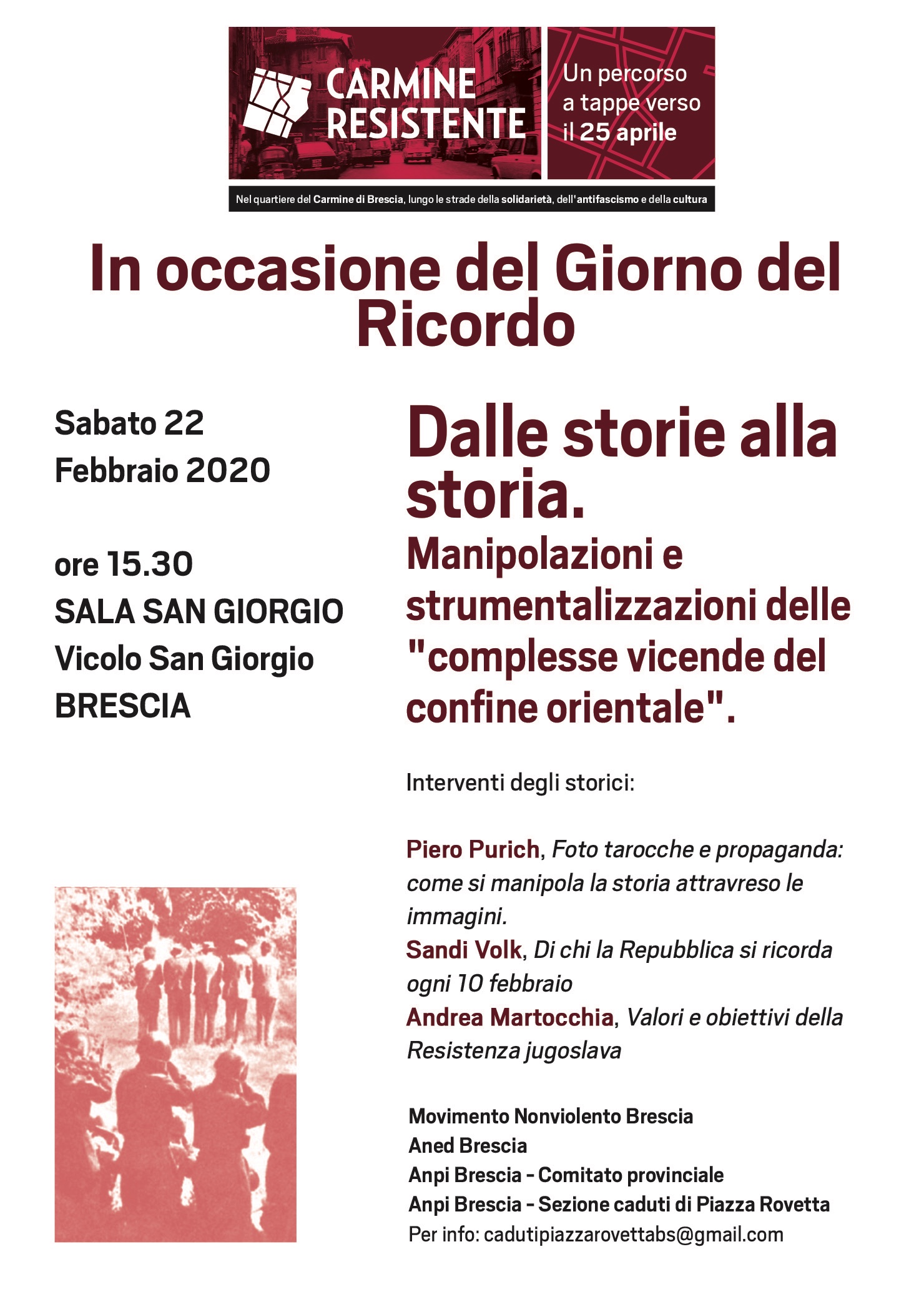 Non una parola sulle stragi e le violenze perpetrate dal nostro esercito sul Confine Orientale dopo l’invasione nazifascista nel 1941 del Regno jugoslavo. Vengono ignorate le deportazioni di donne, bambini e vecchi in decine di campi di concentramento italiani, in condizioni pari ai lager nazisti. Non si ricordano i paesi e villaggi da noi bruciati per rappresaglia. Meglio tacere anche sulla Risiera di San Sabba: lì sotto il comando del Terzo Reich si lasciavano bruciare gli slavi nei forni gestiti dai nostri alleati nazisti.