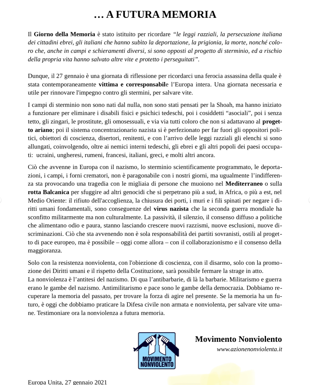 MOVIMENTO NONVIOLENTO